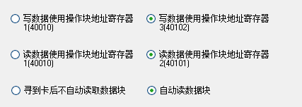 如果要自動讀取數據塊, 則在配置上首先要選擇自動讀數據塊,然後選擇讀數據塊适用地址寄存器40101。